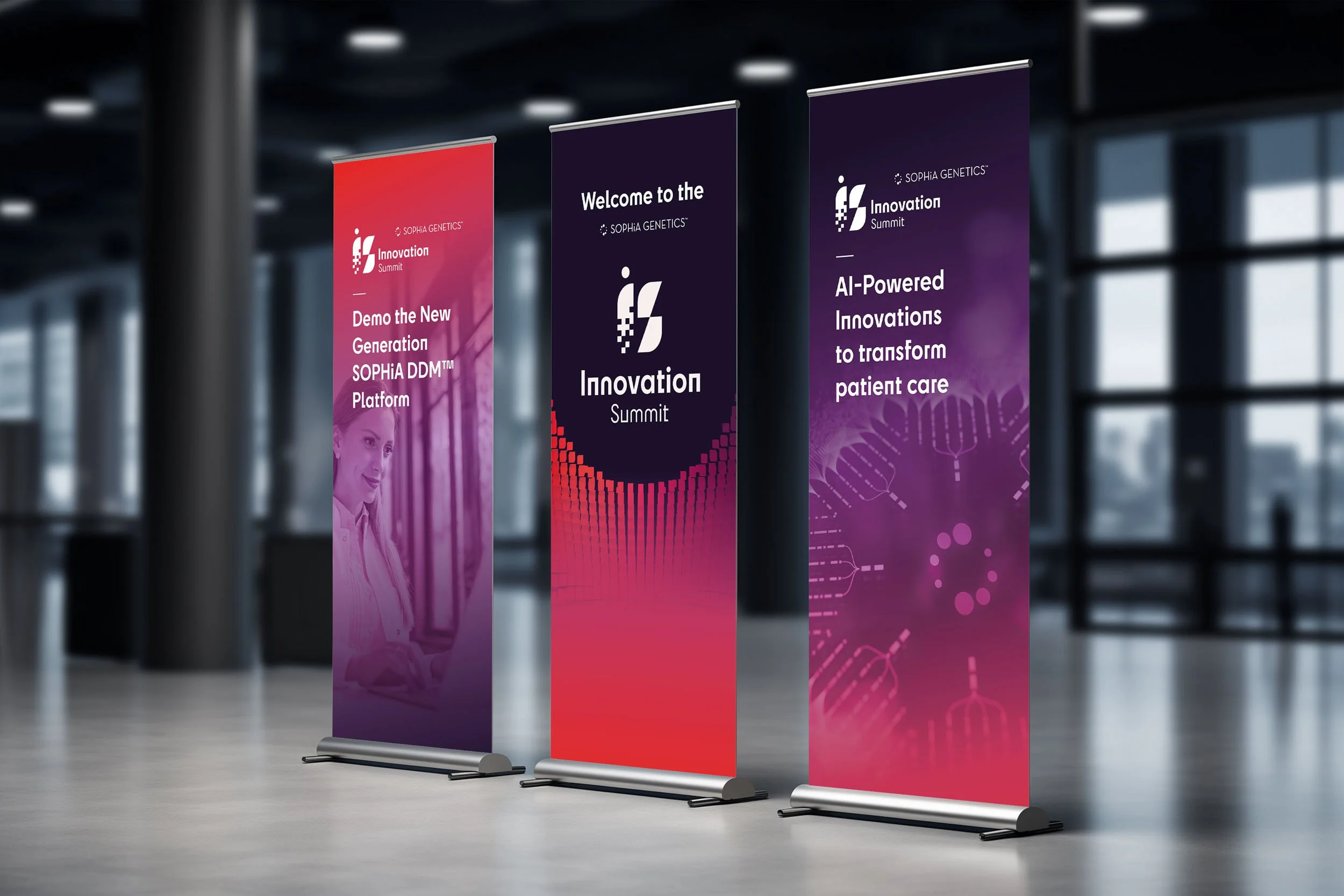 The Innovation Summit is a multi-day international conference series designed to foster collaboration across precision medicine. Through a distinct visual identity and cohesive experience, the project translated SOPHiA GENETICS’ vision of collective intelligence into a credible, engaging, and neutral professional platform.